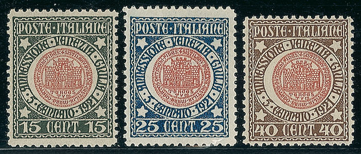 REGNO D'ITALIA - 1921 - Annessione della Venezia Giulia - serie completa - 3...