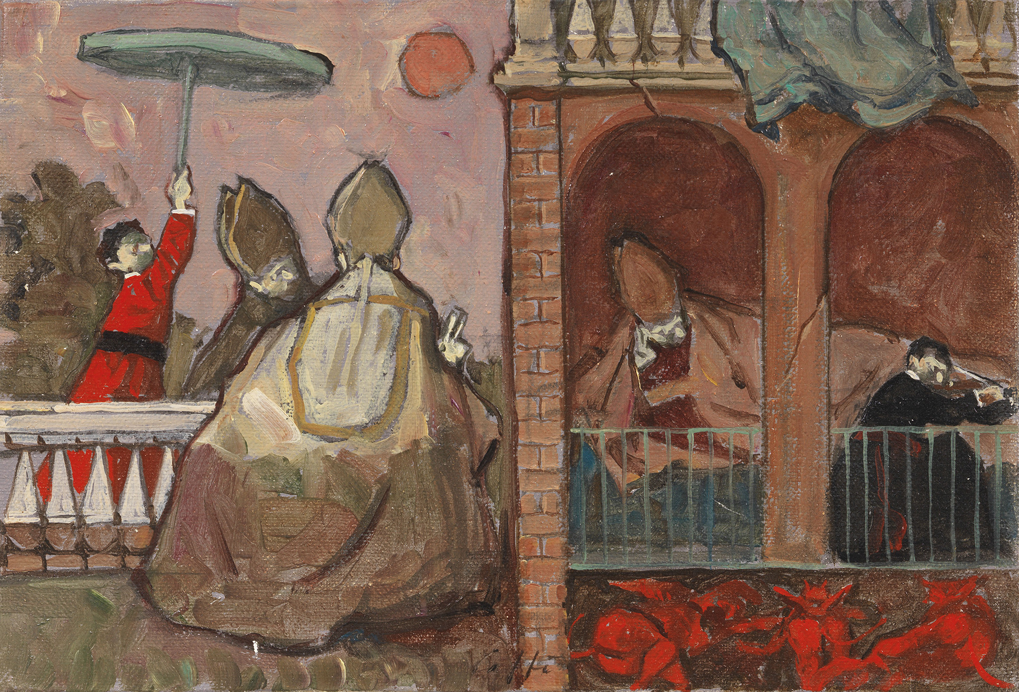 Firma in basso al centro: Caffè; firma e data al verso sulla tela: Caffè / 1972.
