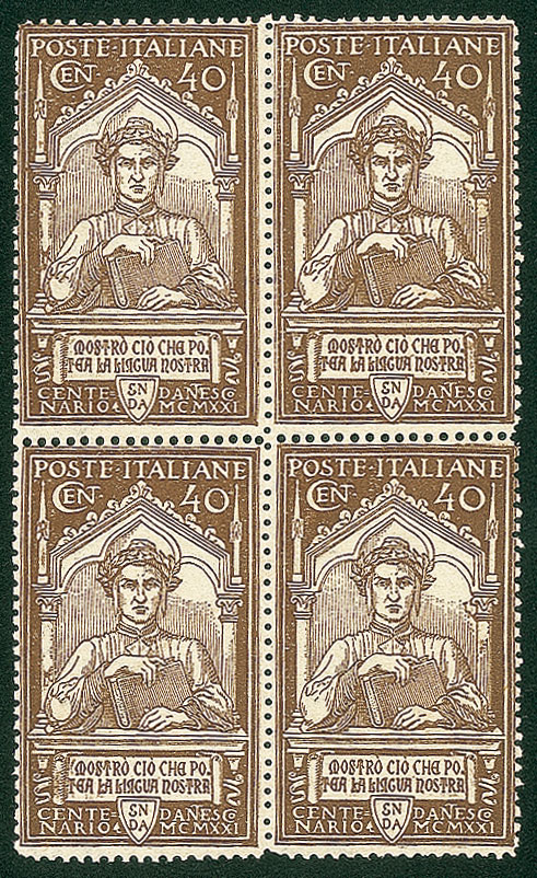 Lotto 369 | REGNO D'ITALIA - 1921 - Dante - serie completa - tre valori in quartine -...