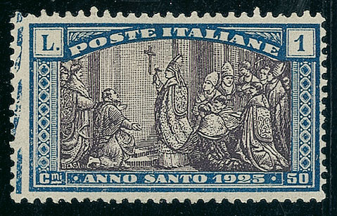 REGNO D'ITALIA - 1924 - 1 lira Anno Santo - linea di spazio tipografico a...