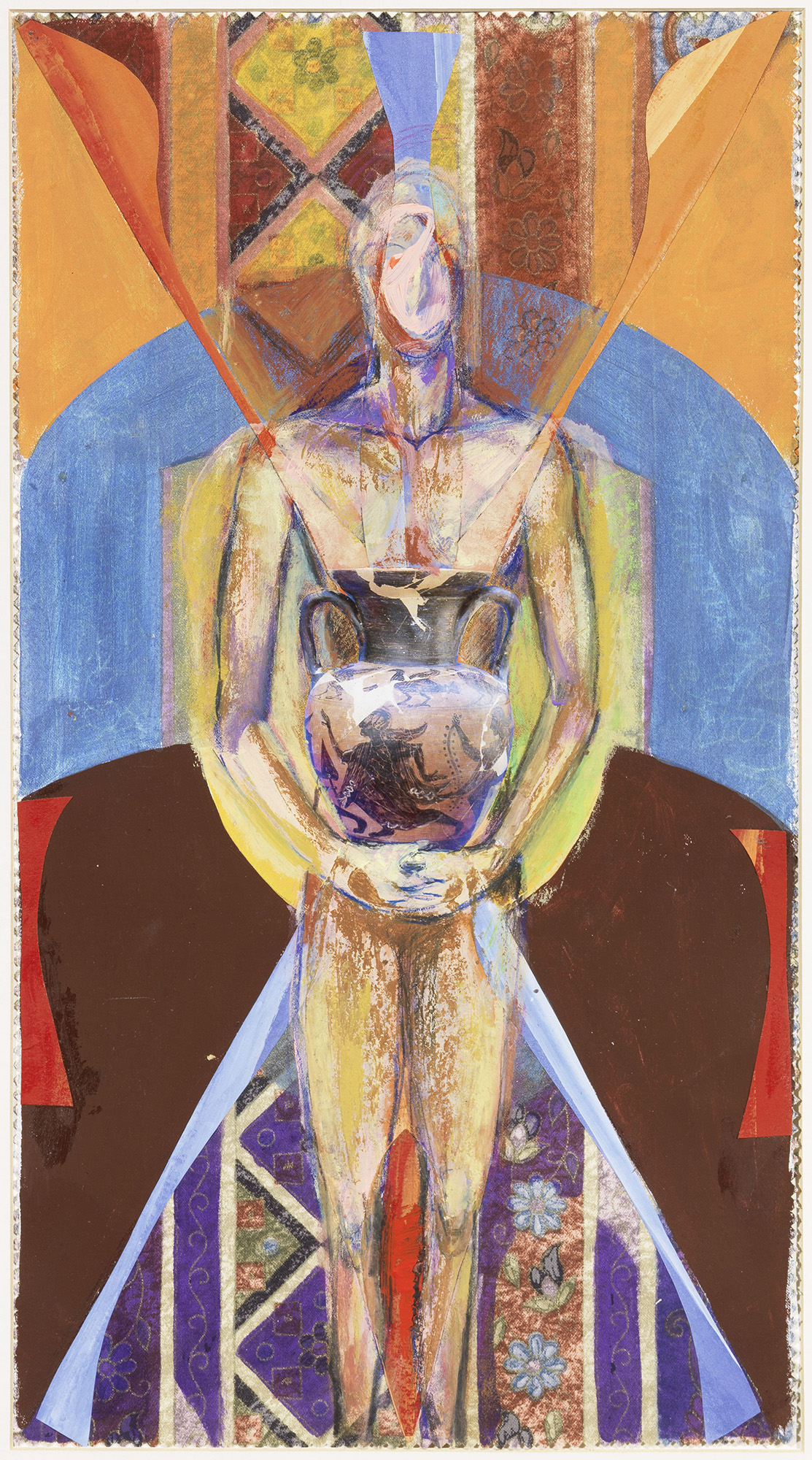 Collage e tecnica mista su stoffa applicata su carta