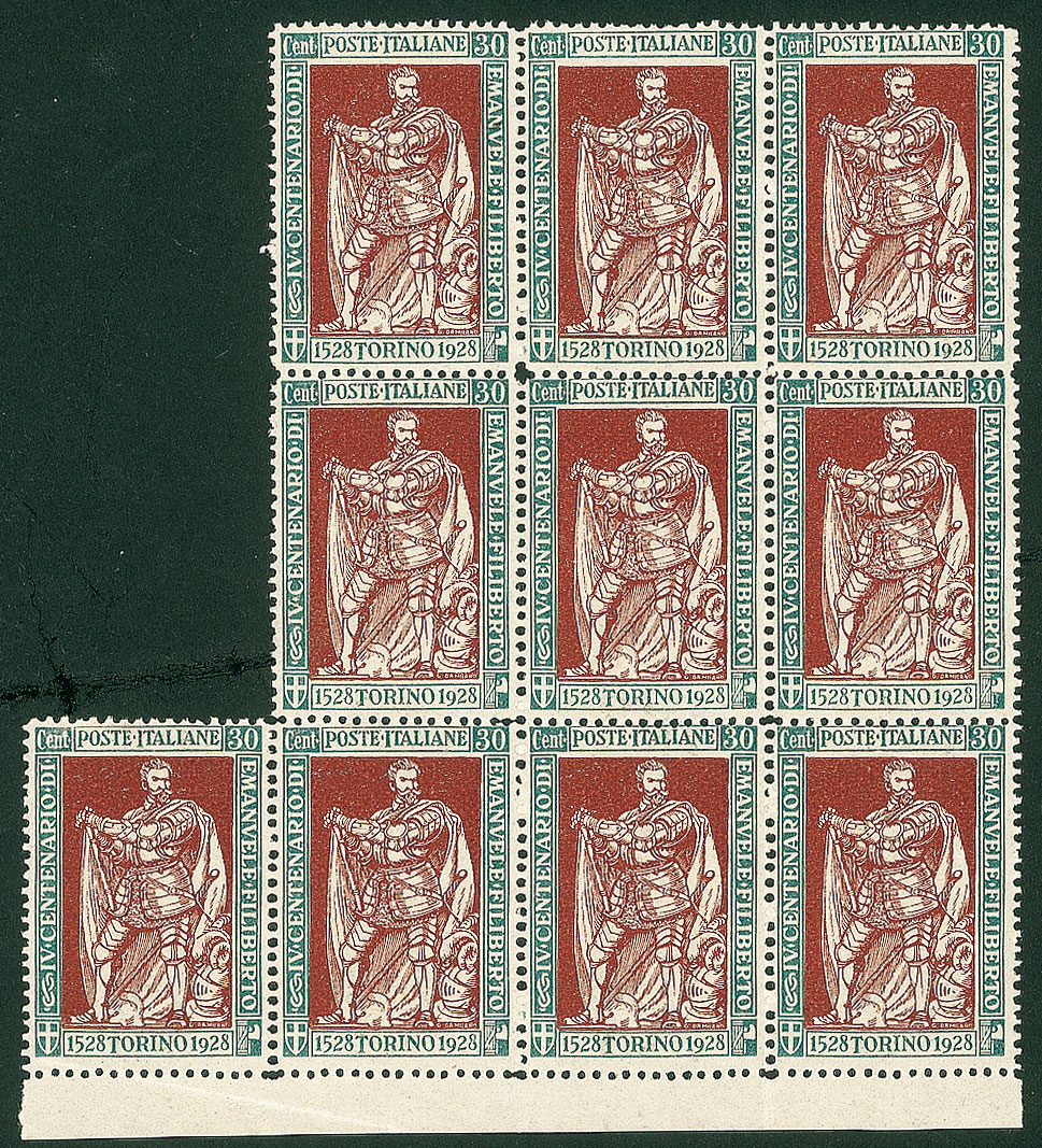 REGNO D'ITALIA - 1928 - 30 cent Filiberto - dentellato 13 - blocco di dieci -...