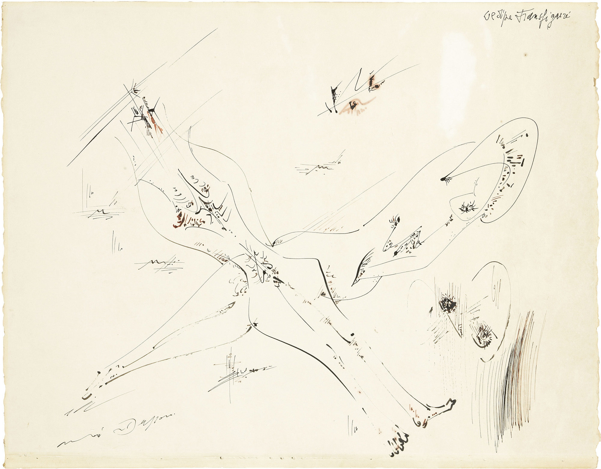 Firma in basso a sinistra: André Masson: titolo in alto a destra: Edipe transfiguré.