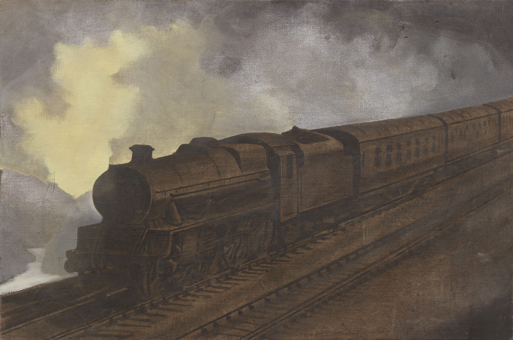 Firma, luogo, data e titolo al verso sul telone: Luca Pignatelli / Milano 2003 / "Treno".