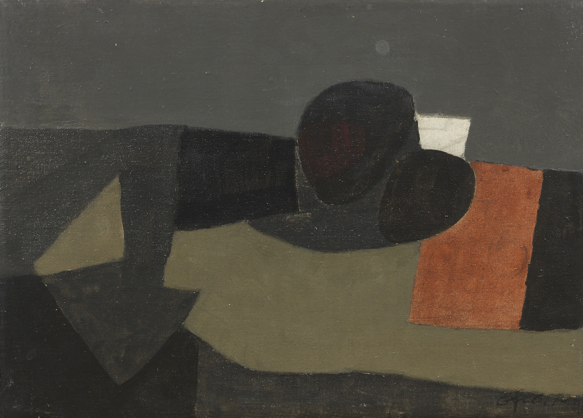 Firma e data in basso a destra: Afro 70; data e titolo al verso sul telaio: 1970 "Vulcano 1".