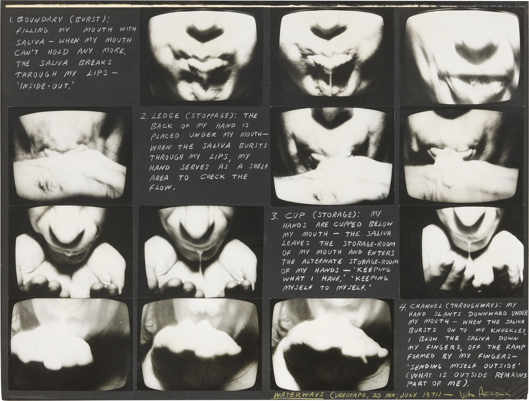 Titolo, data e firma in basso a destra: Waterways (Videotape, 20 min.; July 1971) - Vito Acconci.