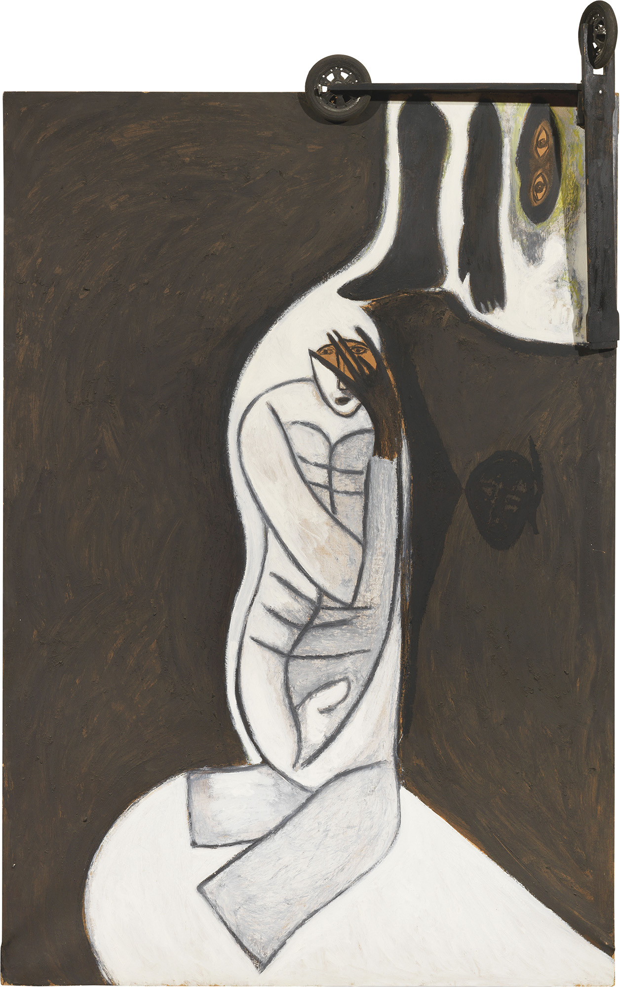 Data, titolo e firma al verso sulla tela: 1983 / Carro di guai / M. Paladino; sul telaio: due etichette Galerie Thaddeus Ropac, Paris, con n. MP 19: etichetta Theo Waddington Fine Art Inc., Boca Raton.