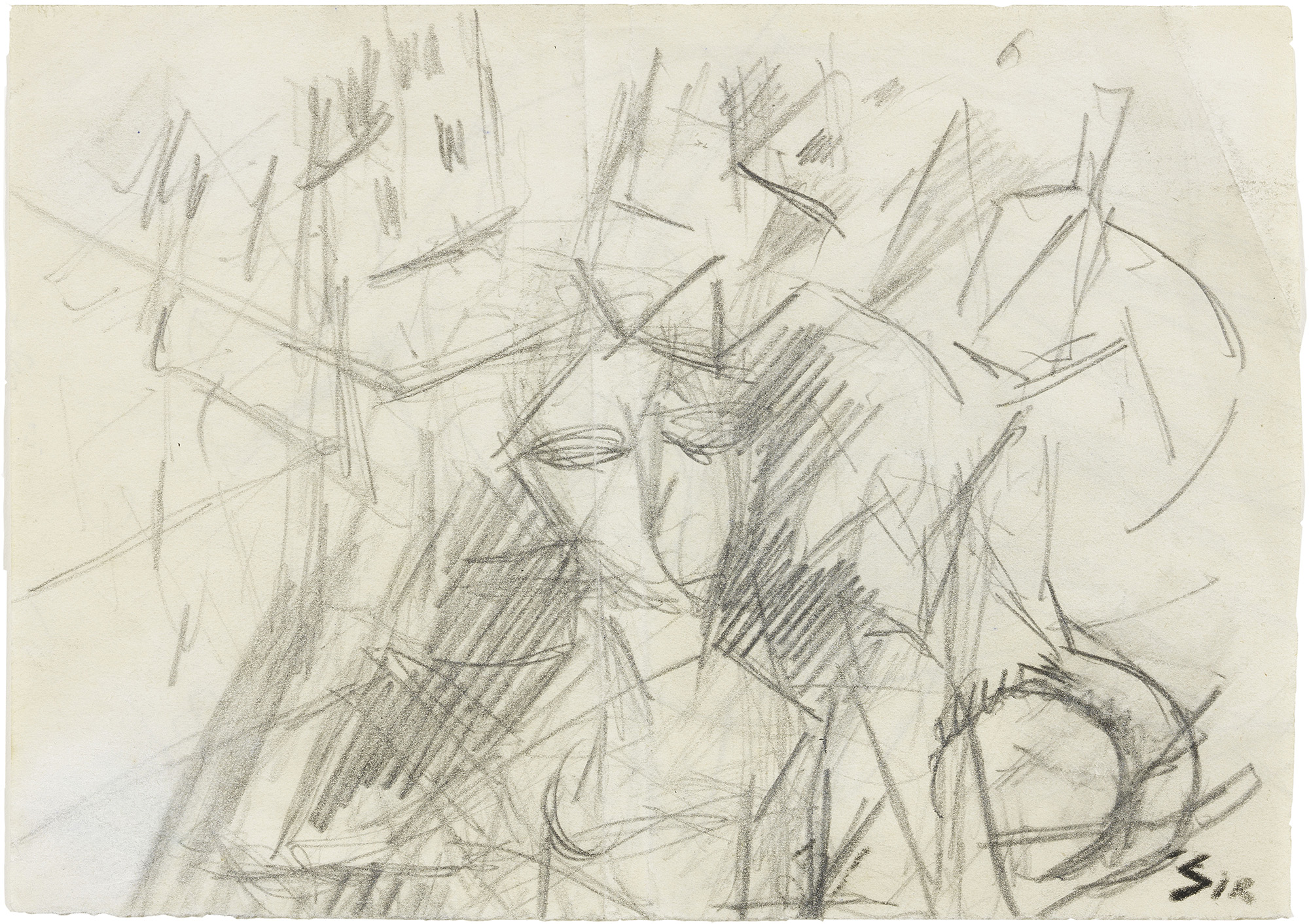 Mario Sironi, Composizione futurista. Figura e case, 1915