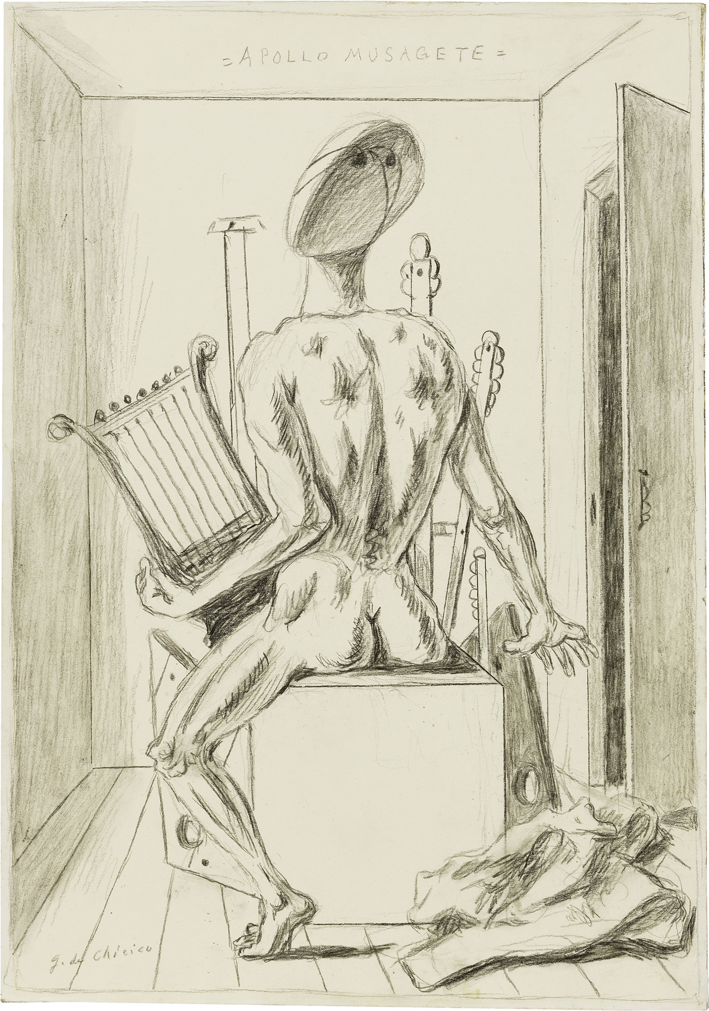 Firma in basso a sinistra: G. de Chirico, titolo in alto al centro: Apollo Musagete.