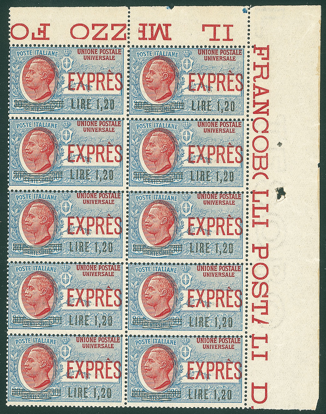 Lotto 409 | REGNO D'ITALIA - 1921 - 1,20 lire su 30 cent - blocco di dieci - ovali...