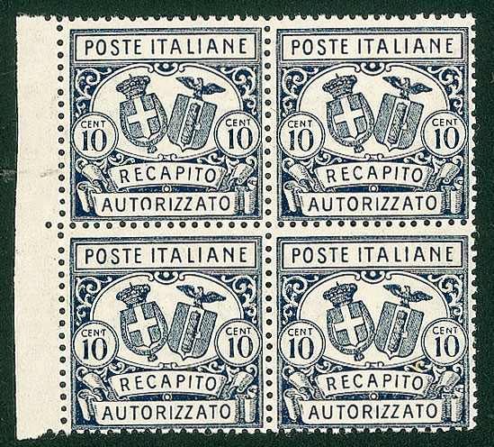 REGNO D'ITALIA - 1928 - 10 cent Recapito - quartina - gomma integra (2 - 130)
