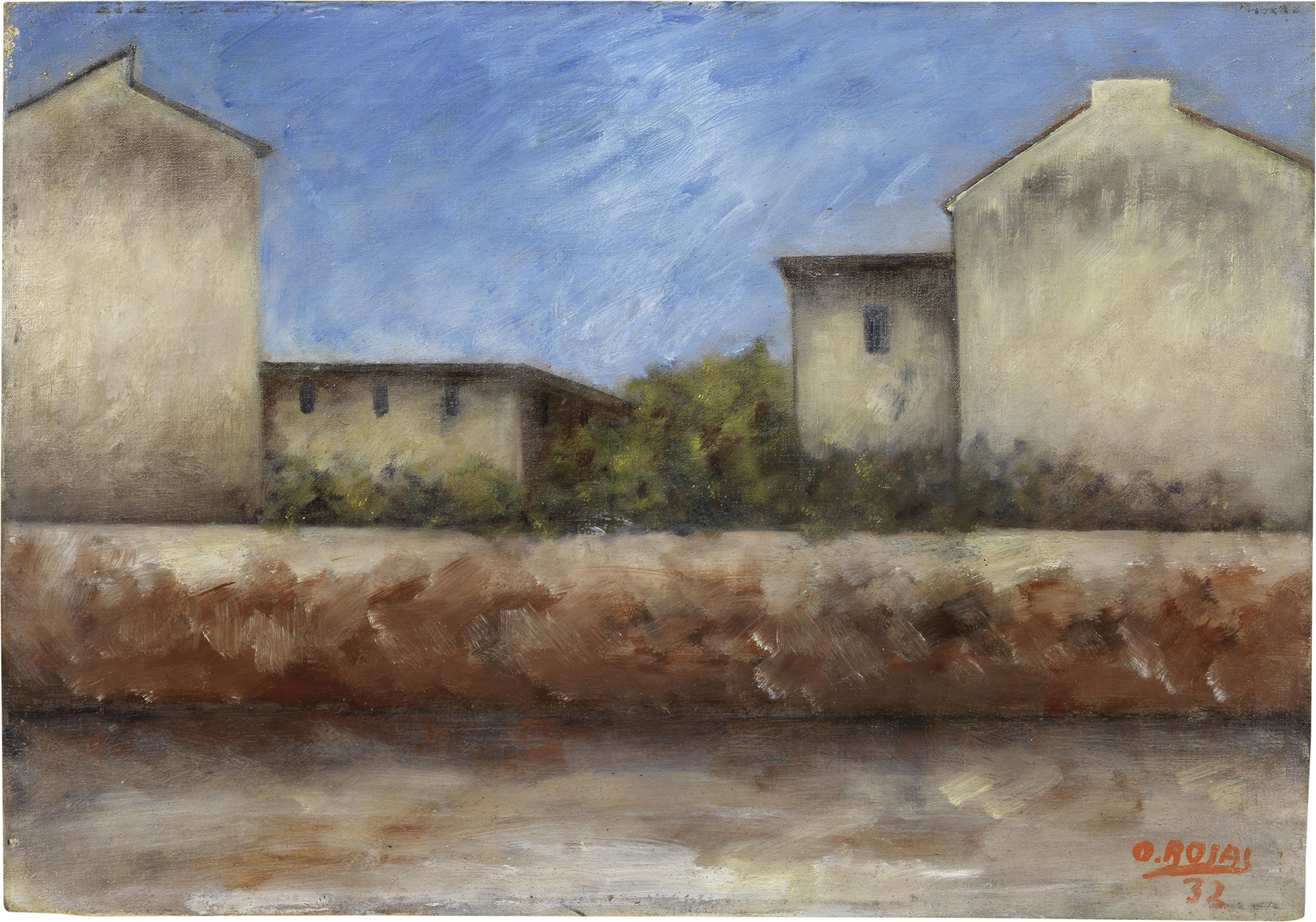 Firma e data in basso a destra: O. Rosai / 32; titolo e numero al verso sul telaio: Case di Via Scialoia 68: