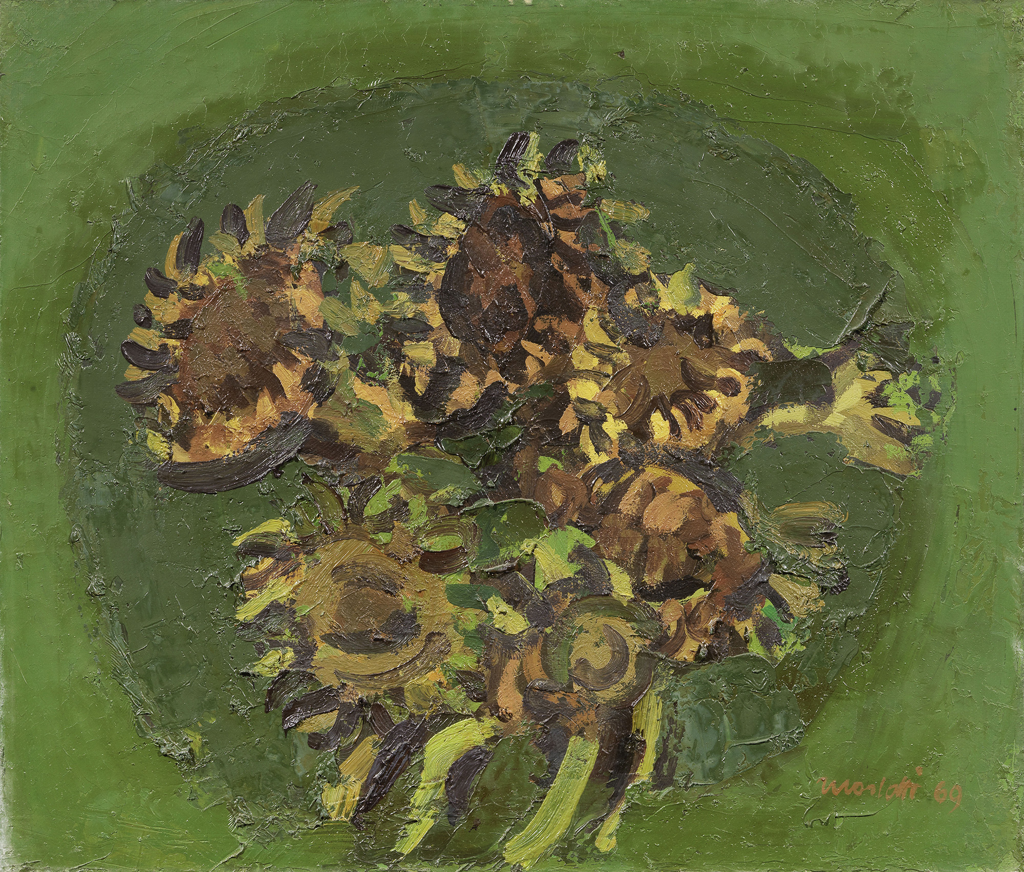 Firma e data in basso a destra e al verso sulla tela: Morlotti 69.