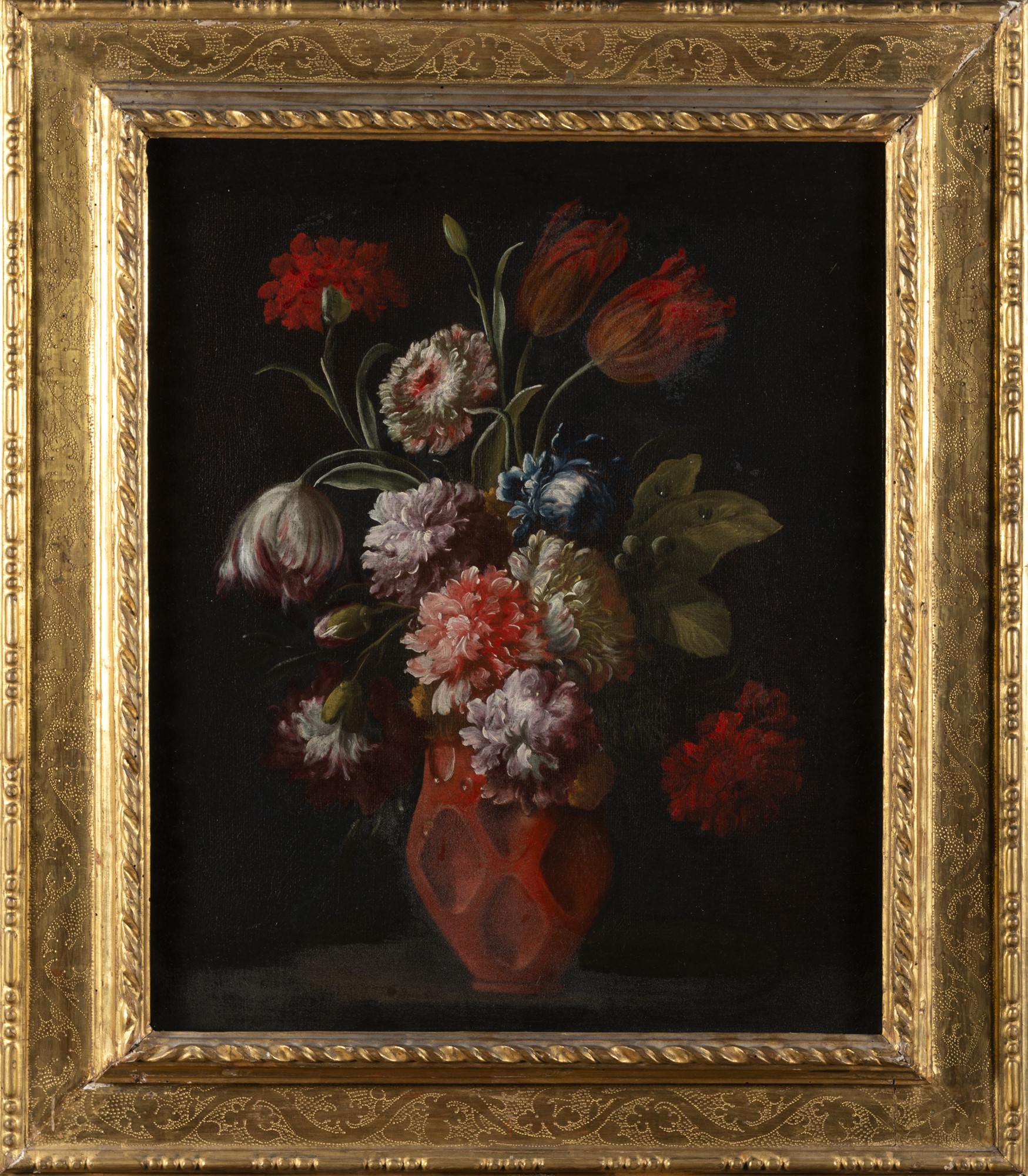 Andrea Belvedere (Napoli 1646/ 1652-1732) - Fiori in un vaso alveolato di terracotta invetriata
