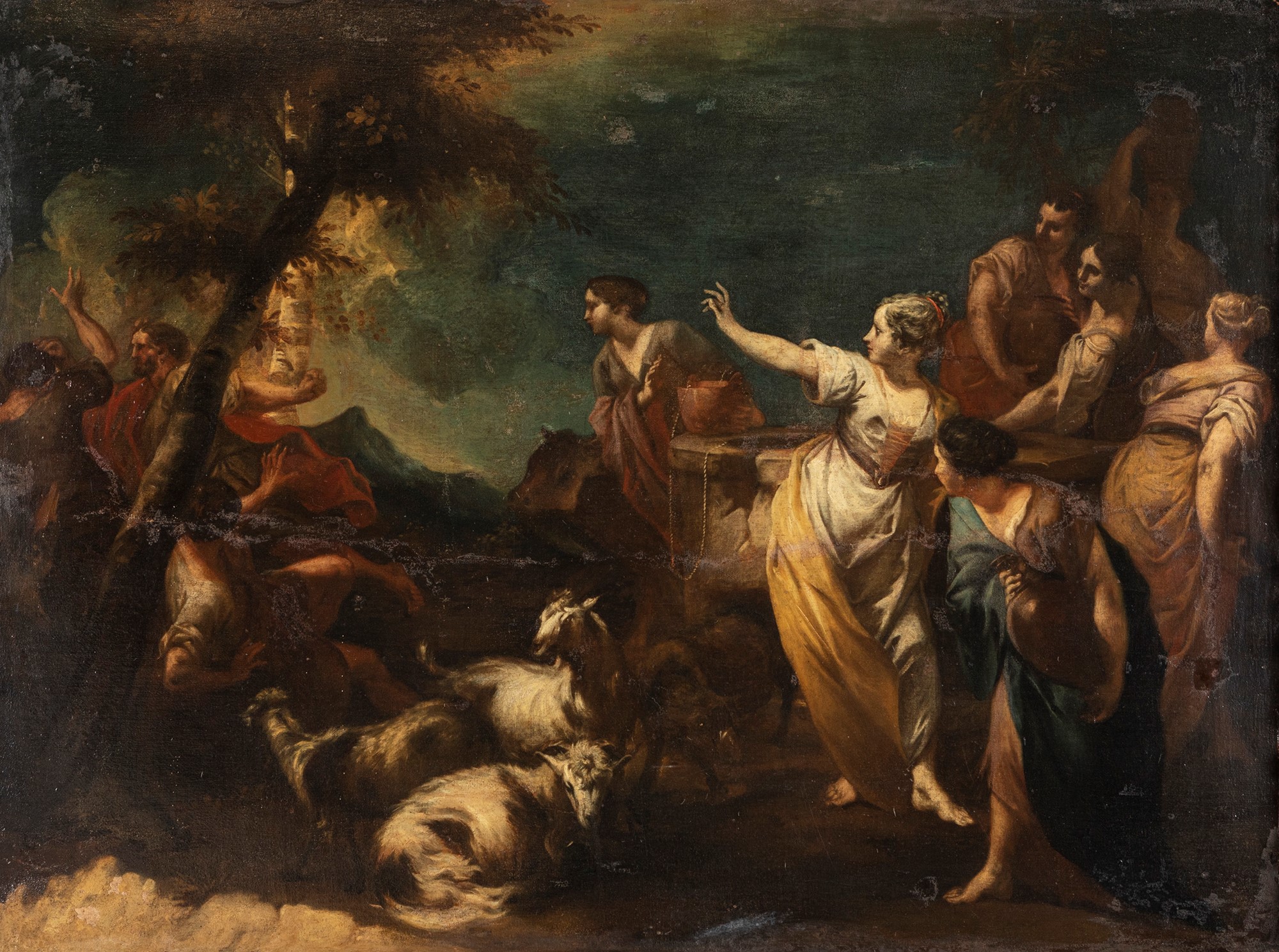 Scuola veneta, fine secolo XVII - inizi secolo XVIII - Mosè difende le figlie di Jetro