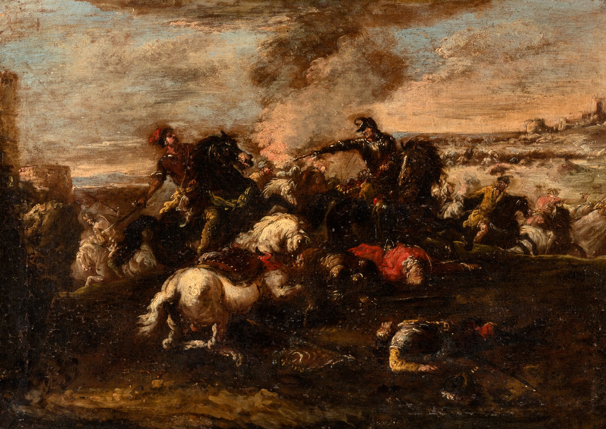 Scuola italiana, secolo XVII - Due scene di battaglia