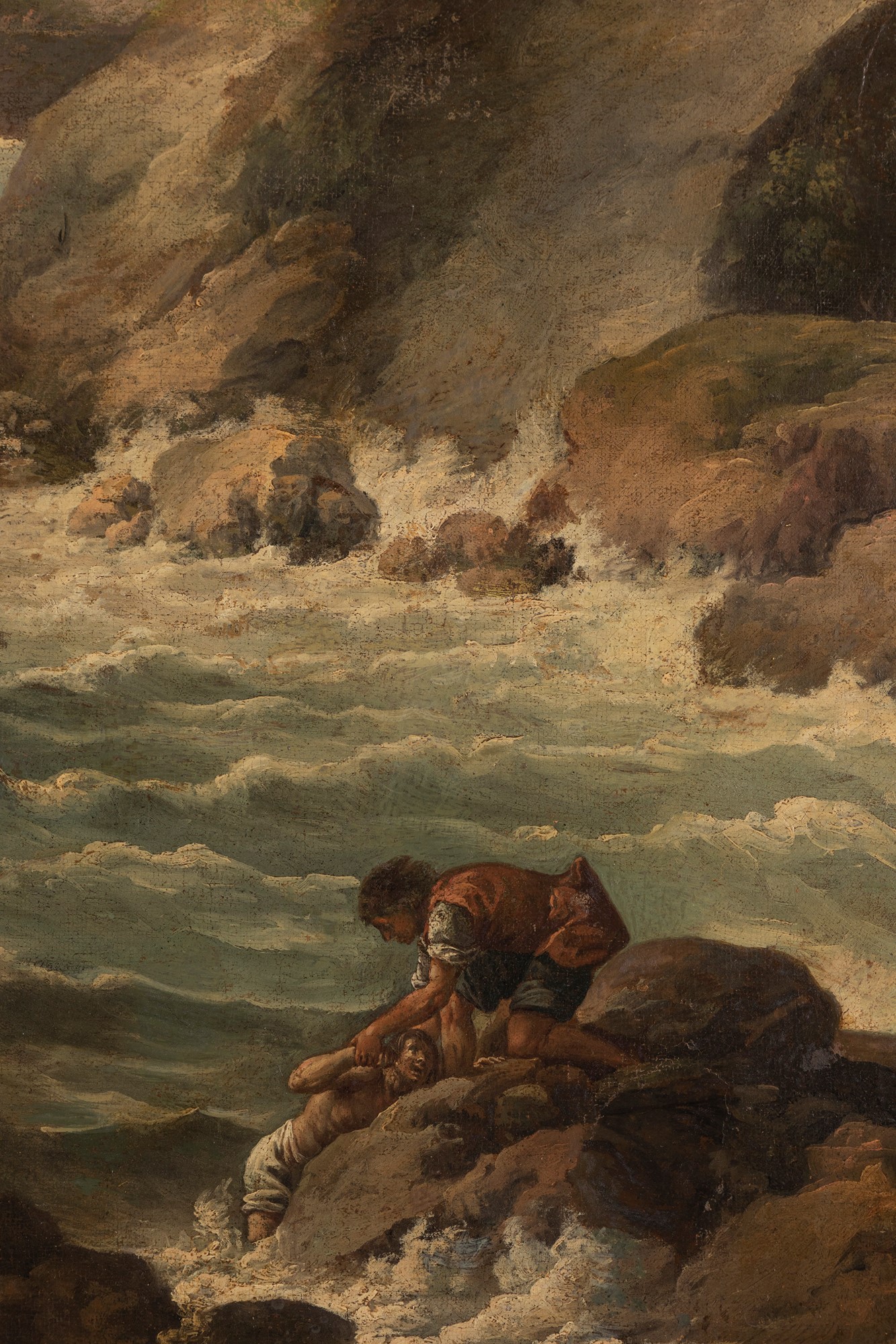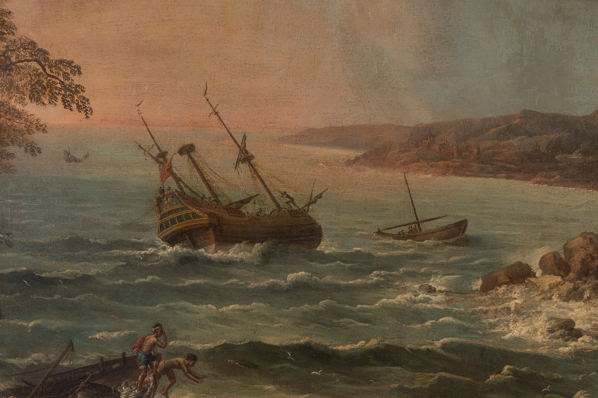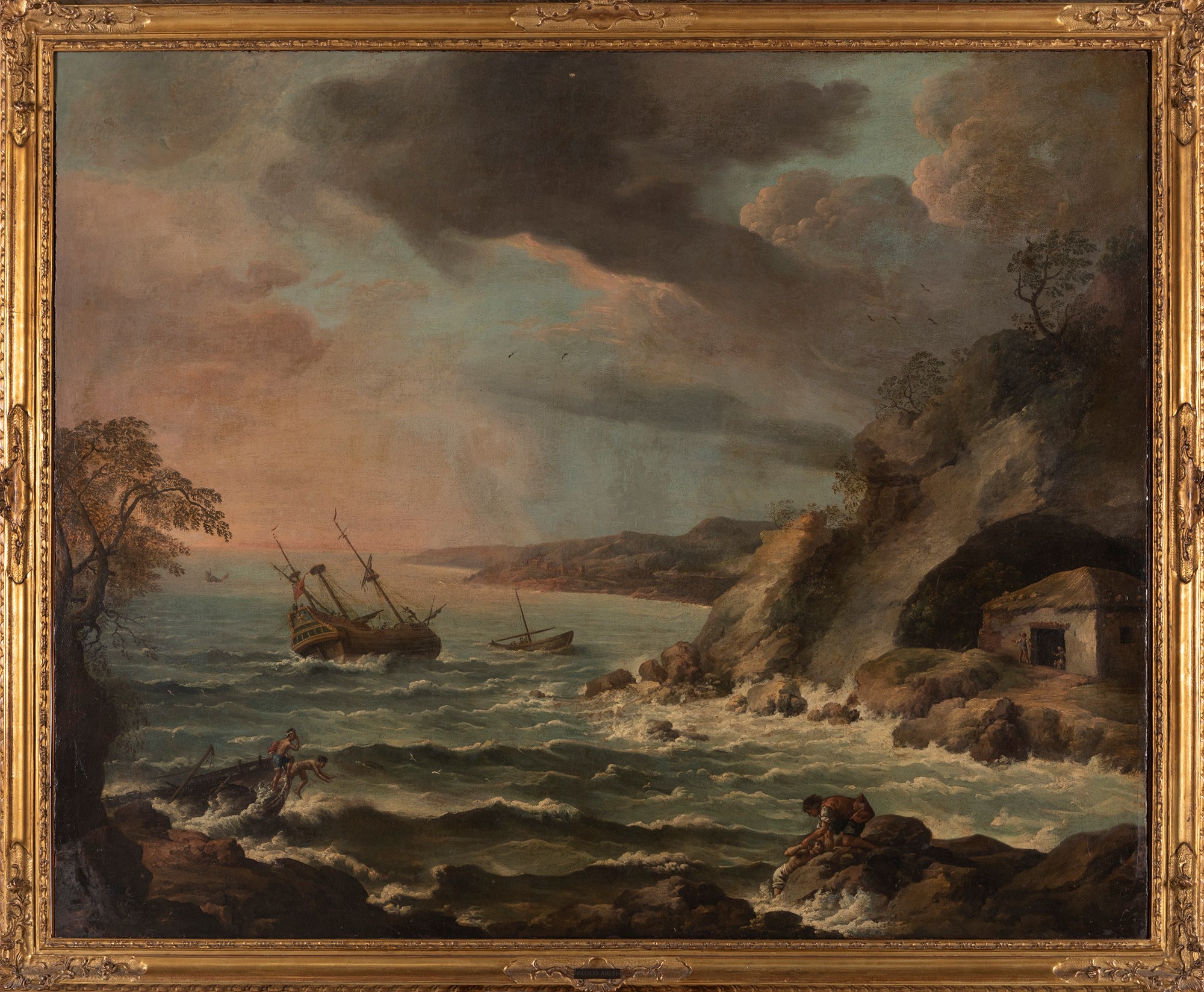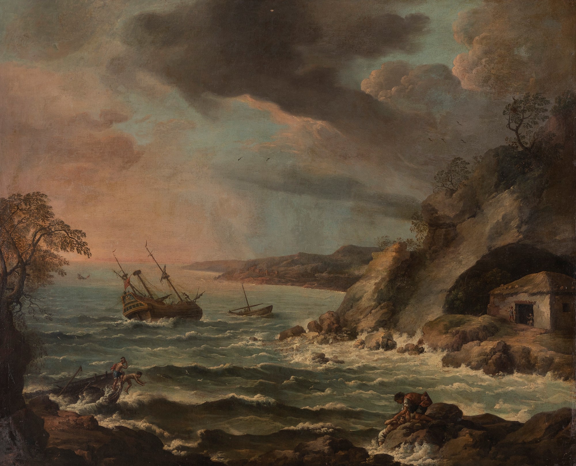 Scuola romana, fine secolo XVII - inizi secolo XVIII - Paesaggio con mare in tempesta