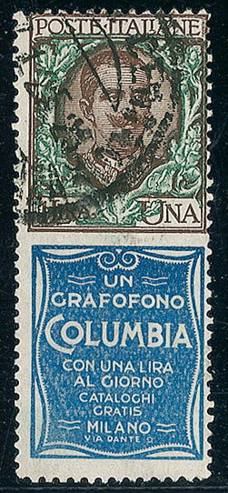 REGNO D'ITALIA - 1924 - 1 lira Columbia - leggera piega diagonale (19 Pubblicitari - 1.300)