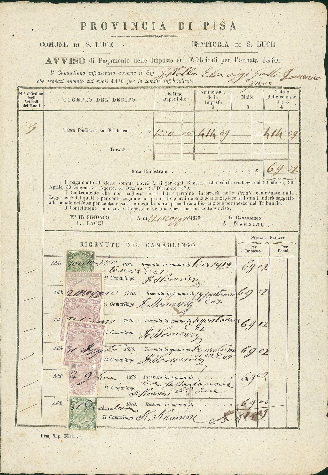 Lotto 423 | REGNO D'ITALIA - Gemelli - Avviso di Pagamento per Imposta Fabbricati -...