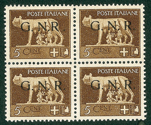 RSI - 1943 - 5 cent - blocco di quattro - in alto a sinistra - R accostata a...
