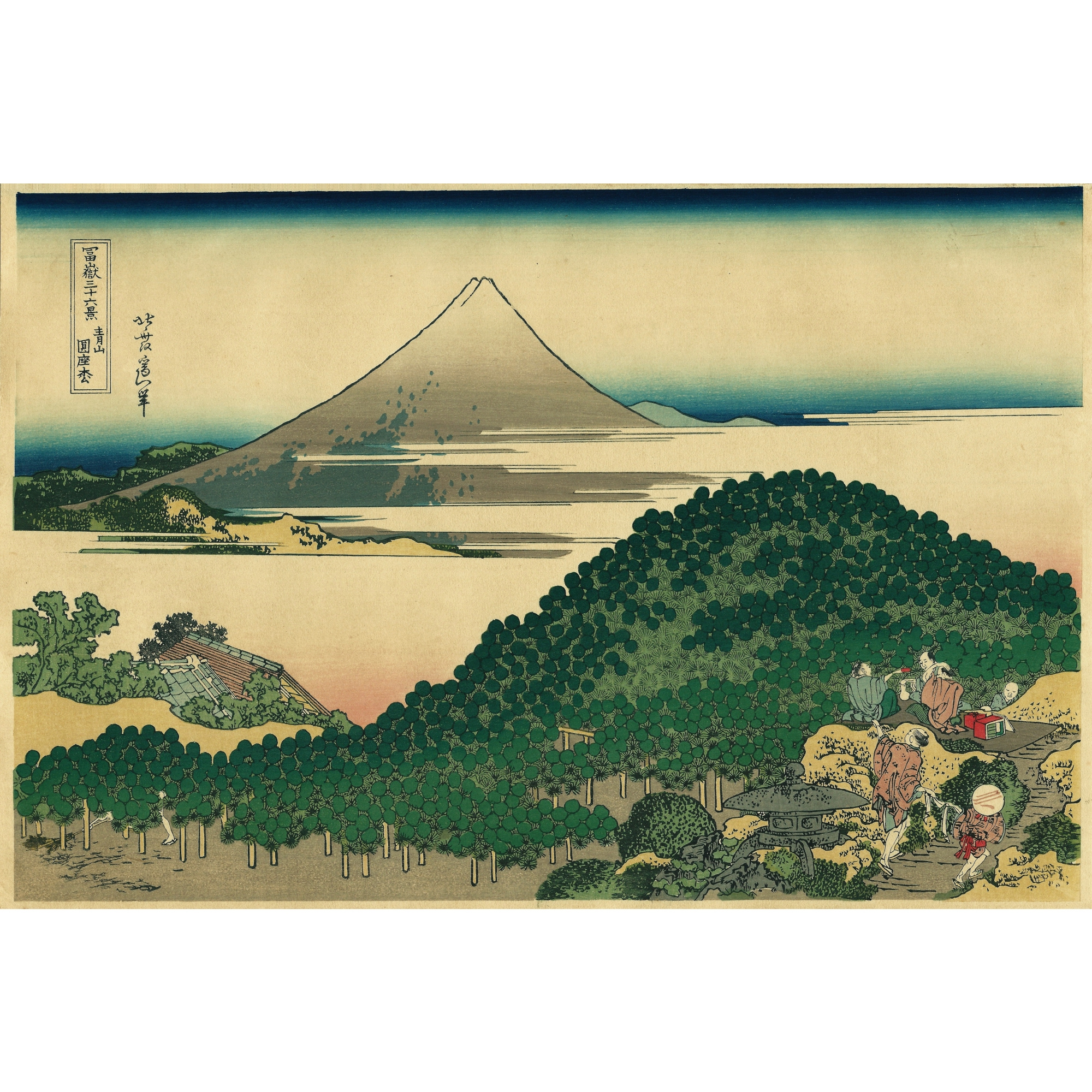 HOKUSAI (Edo 1760 - 1849), Il cuscino di pini ad Aoyama, 1830-32. Xilografia a colori, firmata ''Hokusai aratame Iitsu hitsu''. Serie: Trentasei vedute del Fuji. Formato: oban (mm. 251x376). Editore: Takamizawa Mokuhansha (al verso). Edizione: Periodo Taisho-Showa (1925-30).