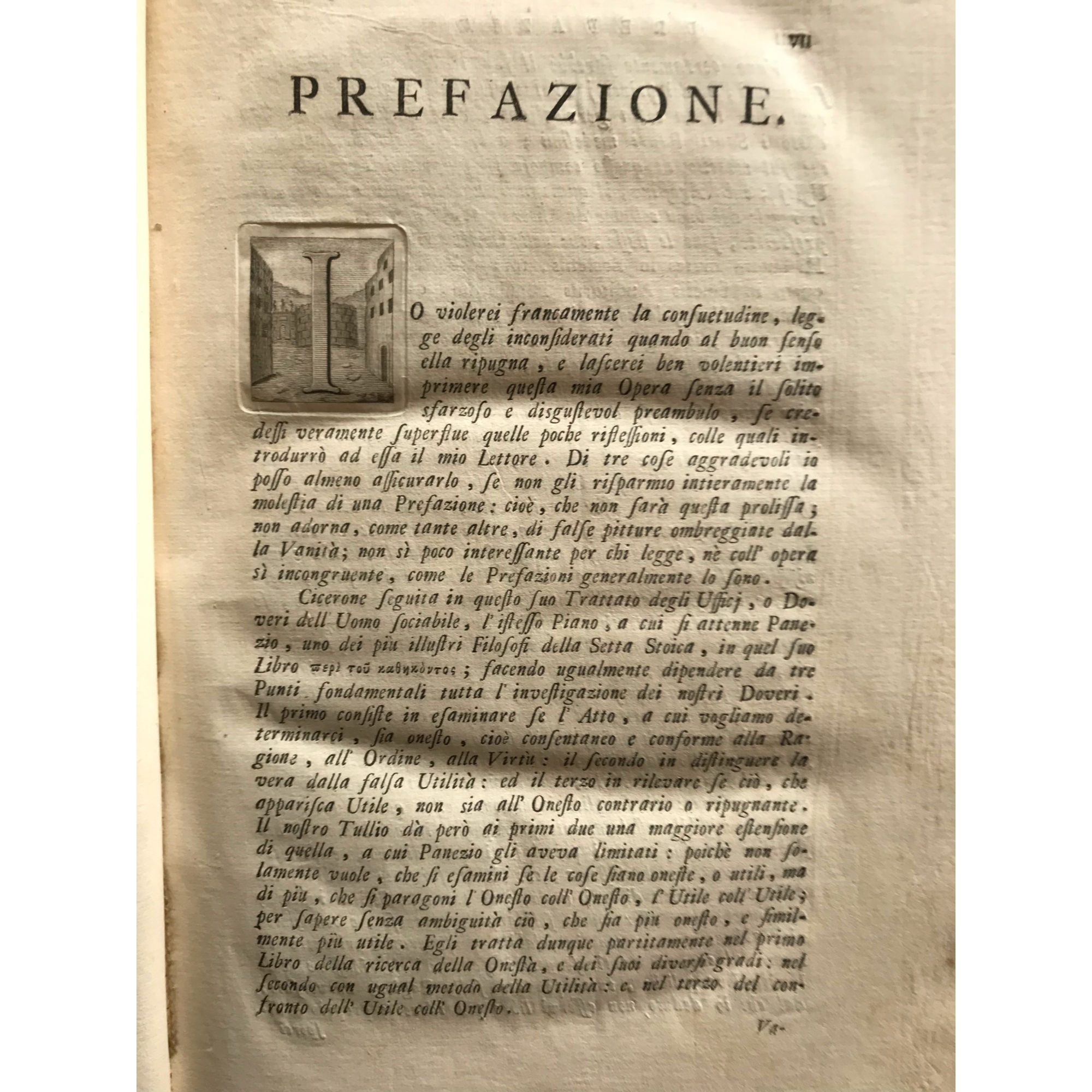 1756, Cicerone, Degli Uffici ''..tradotti sull'edizione latina del Grevio divisi in nuovi capitoli, Libri Tre e sopra di essi Commentari di Giurisprudenza d'Etica filosofica di Politica e di Filologia''