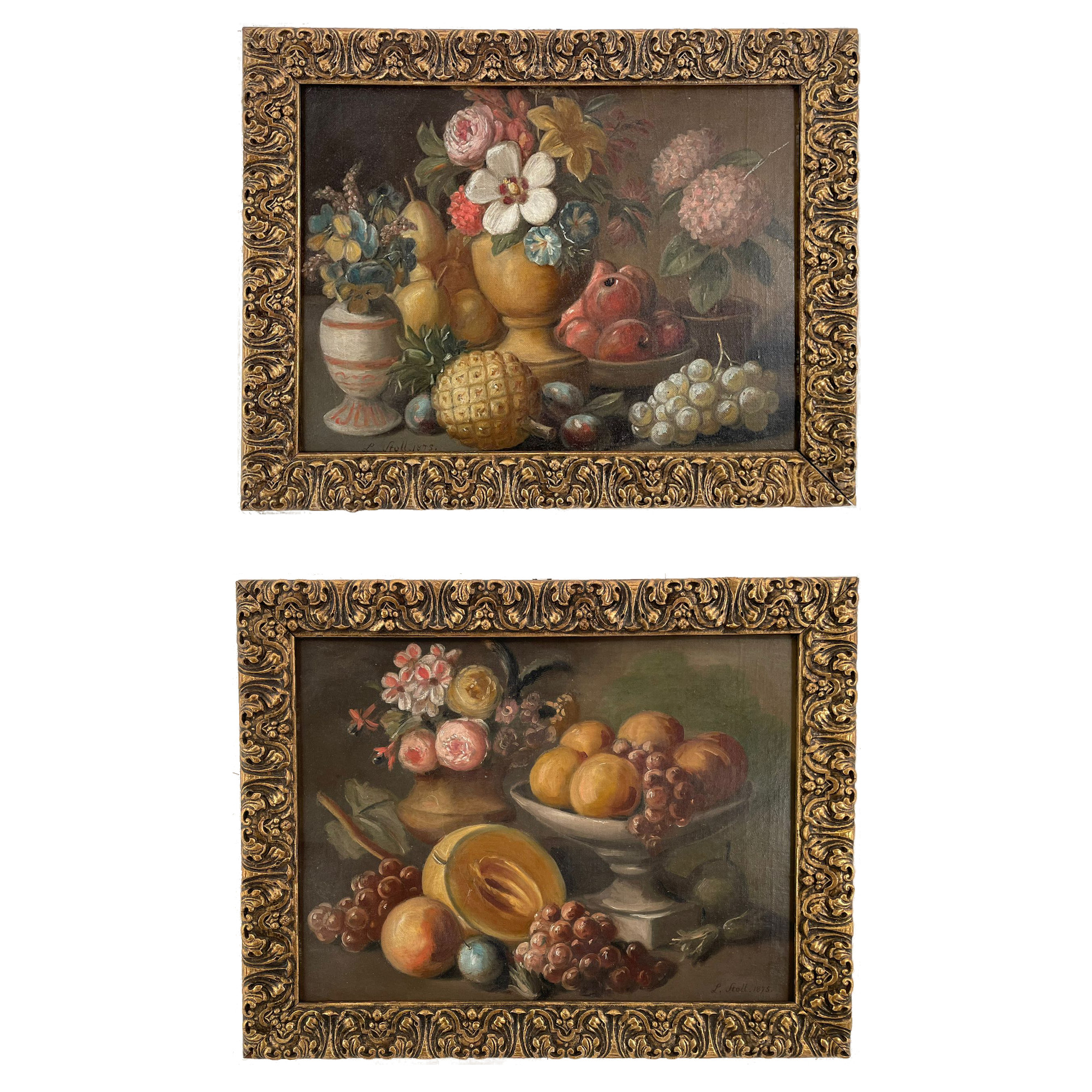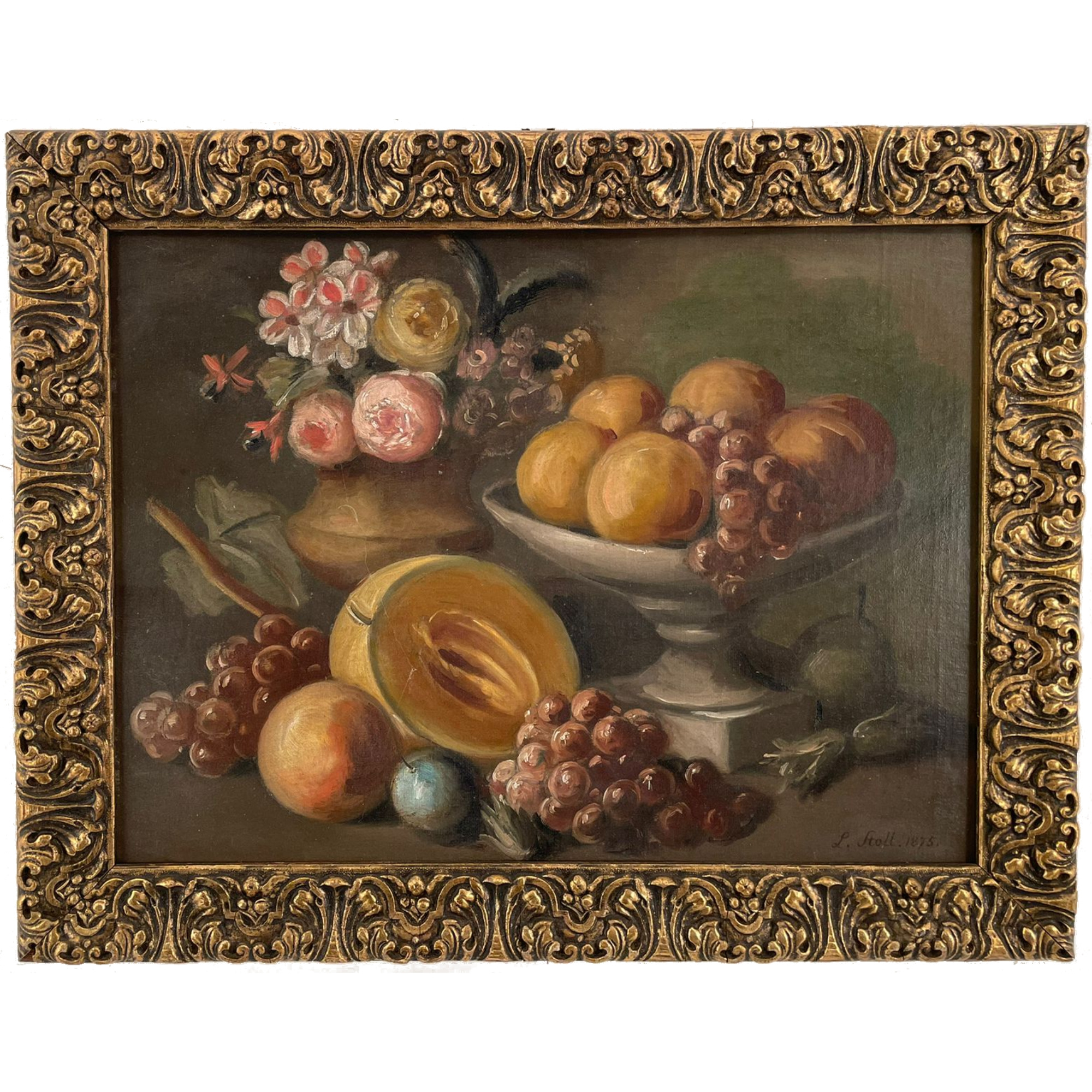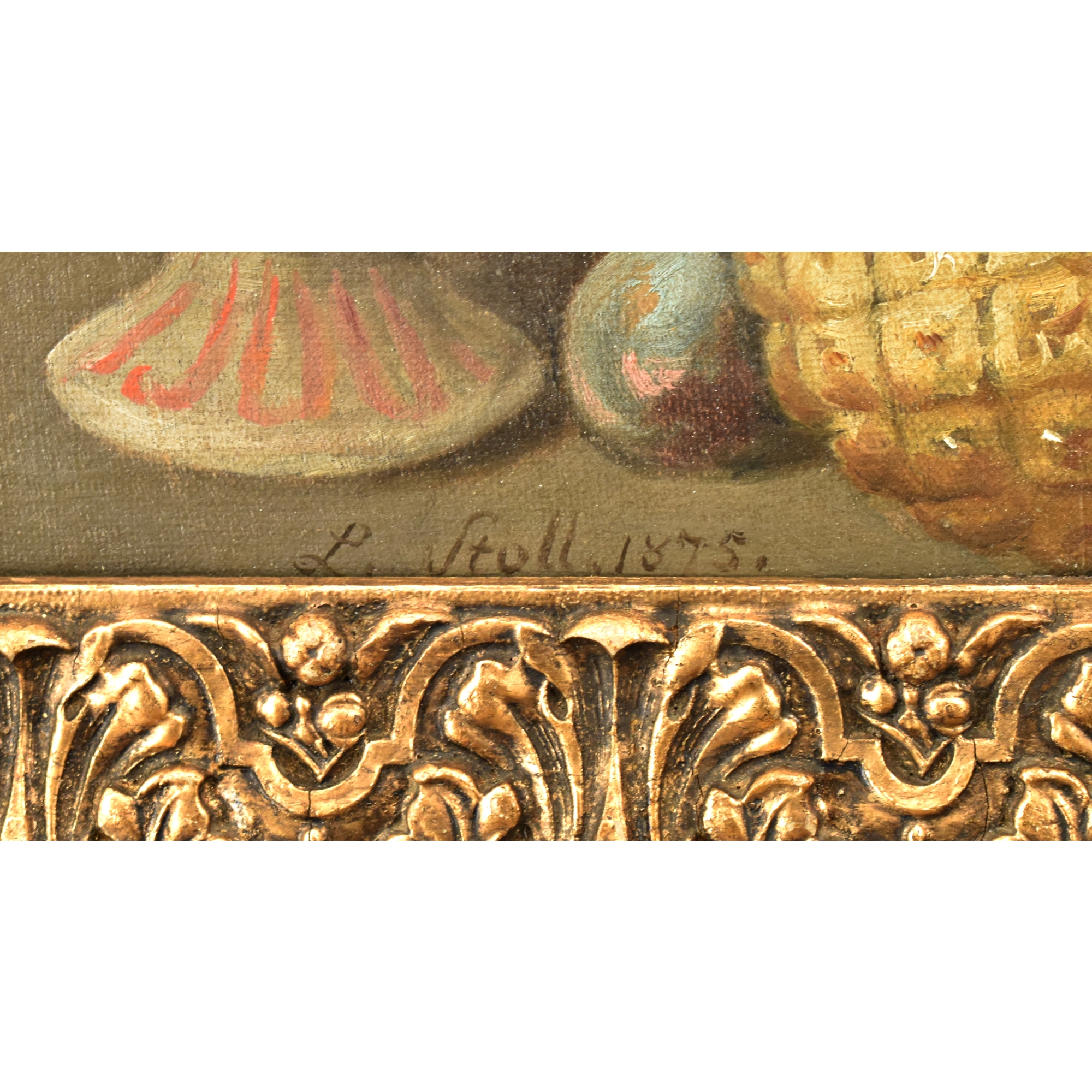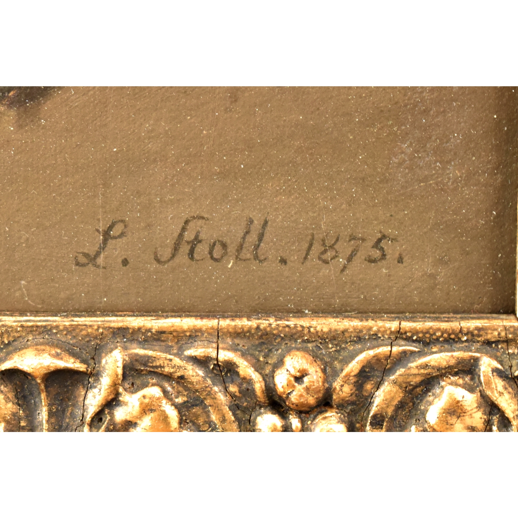 Leopold Van (Von) Stoll (Olanda 1808 – Vienna 1889) Paio di dipinti ad olio su cartone raffiguranti “Nature morte”. Firmati e datati “L. Stoll 1875”. Cornici coeve.