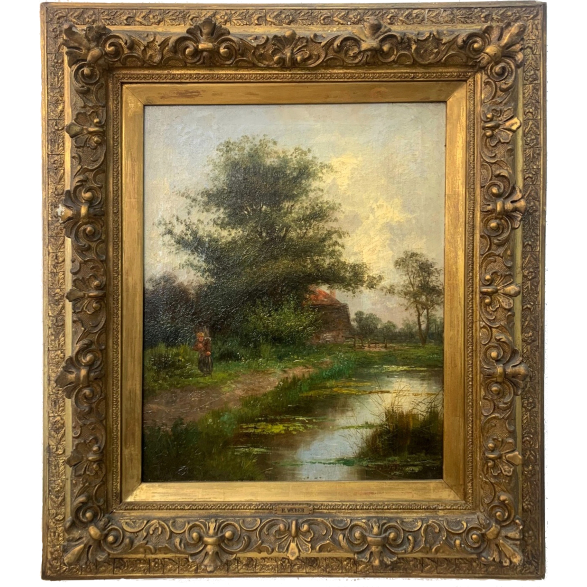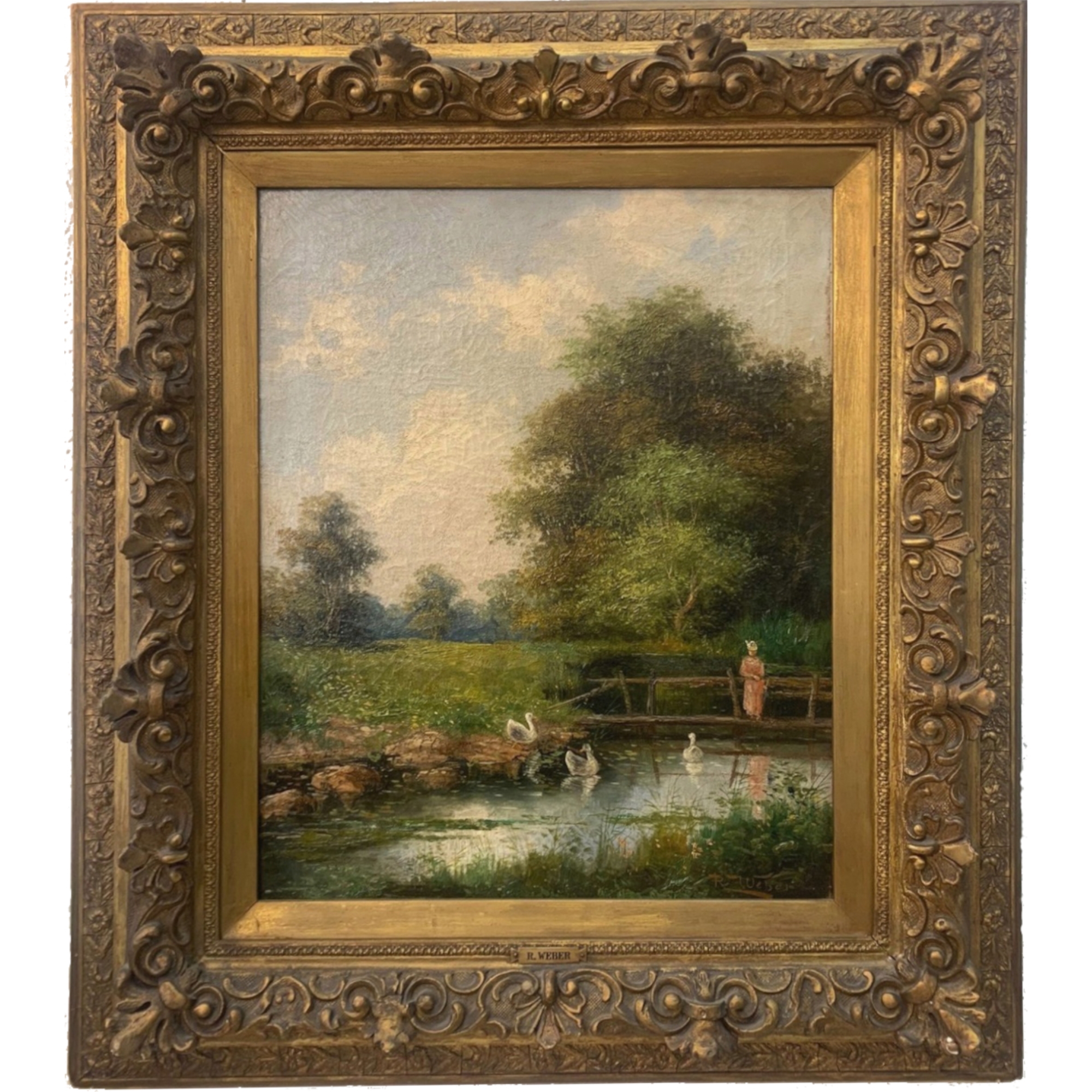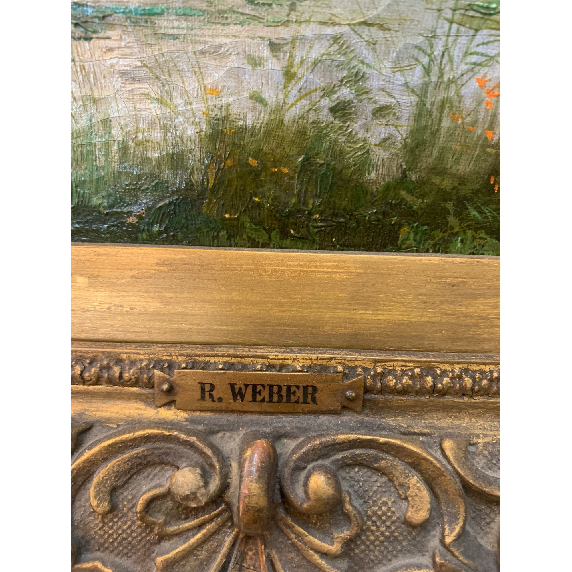 Rudolf Weber: (Vienna 1872 - Krems 1949), coppia di dipinti olio su tela, con scene di paesaggi e campagna austriaca. Misure solo tele 40 x 50 cm. Con cornice 67 x76 cm. Entrambi con firma su tela