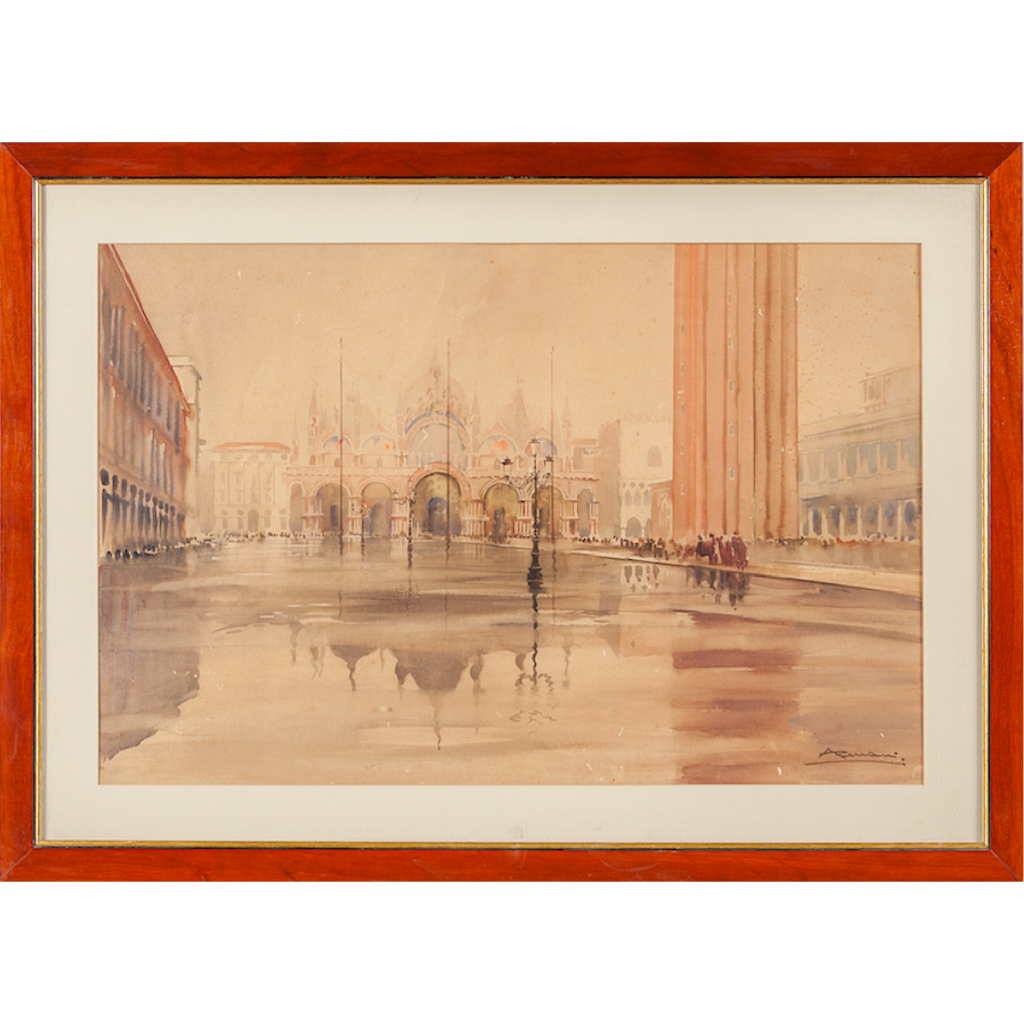 Armani Ernesto Giuliano (1898 - 1986), Venezia Pioggia a Piazza San Marco, Acquerello, cm 75x48 circa. Firmato in basso a destra.