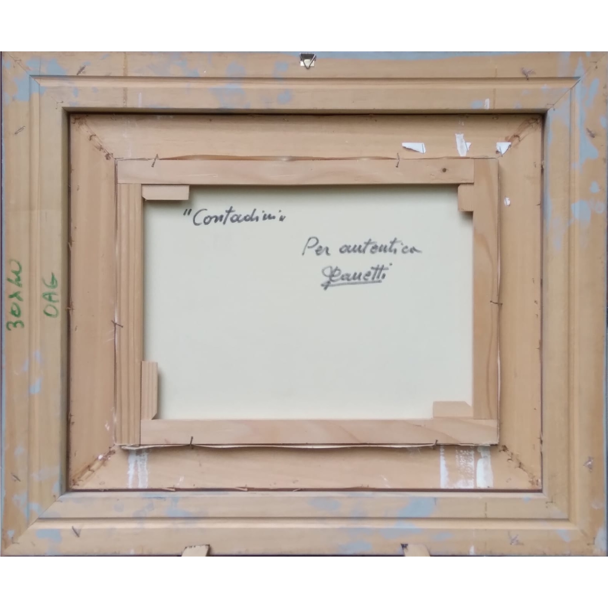 Quadro Canetti Paolo: (XX - XXI) Milano 1940 - ancora in vita. Firmato. Olio su tela. Misure tela 30 x 40 cm. Cornice 65 x 54. ''Contadini''