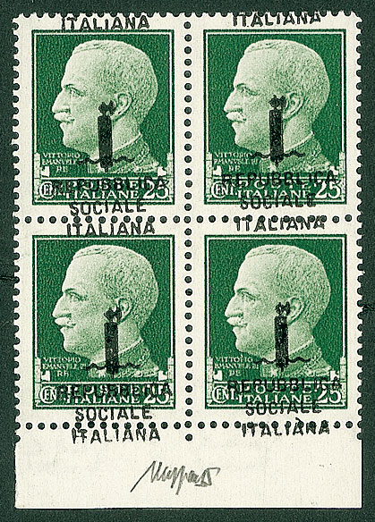 RSI - 1944 - 25 cent - Italiana in alto - quartina bordo foglio - gomma integra (491pia - 240++)