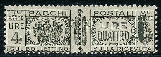 Lotto 468 | RSI - 1944 - 4 lire - soprastampa di 36 mm. - gomma integra (45a Pacchi...