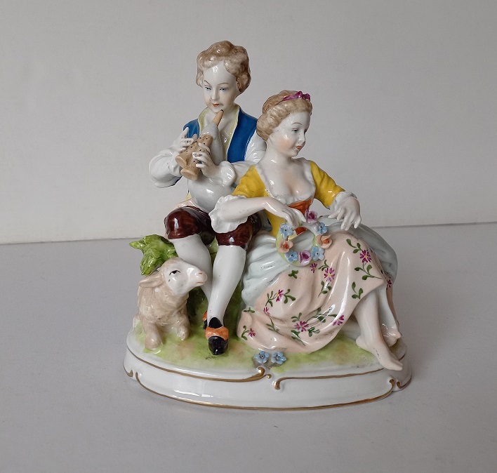 Manifattura italiana - Gruppo in porcellana policroma - h. cm.23