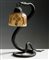 Le Verre Français. Lampada da tavolo con diffusore in vetro a cammeo a bacche nei toni del marrone e fusto in ferro battuto a forma di serpente, 1925 circa. Firma:murrina altezza cm 44