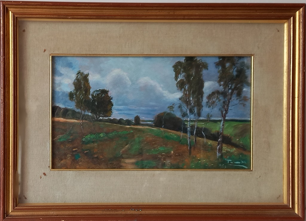 ELVINO TOMBA - Paesaggio 1950 - Olio su tavola cm.24x41 - firmato e datato in basso a destra