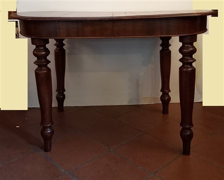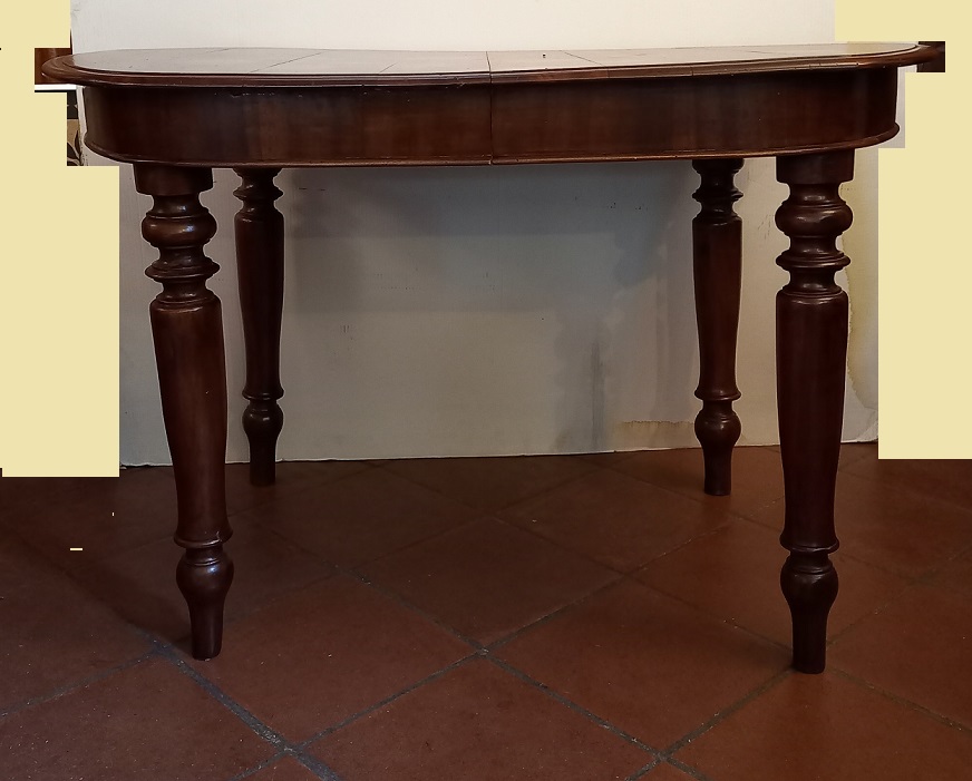 Tavolo ovale allungabile in legno di noce a quattro gambe tornite - XIX secolo cm.118x79 h.cm.77 con allunga da cm.53