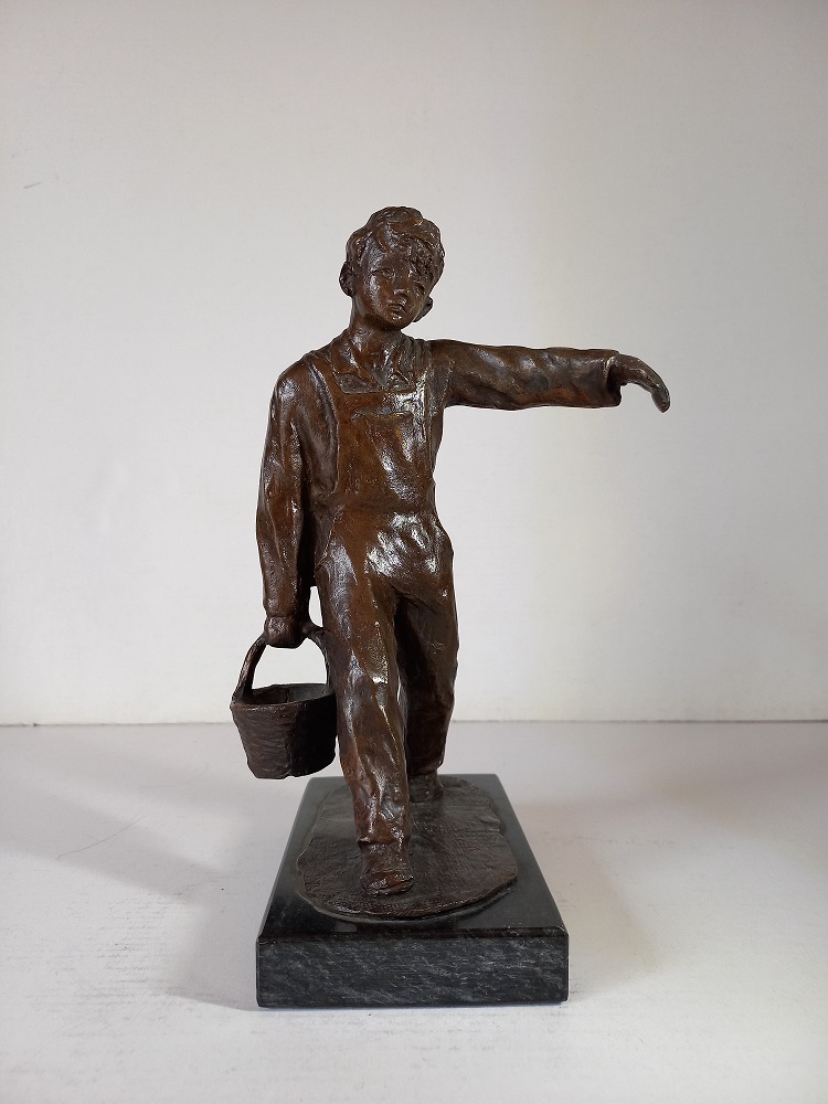 DINA PALA (1933) - Giovane con secchio - Scultura in bronzo h.cm.24