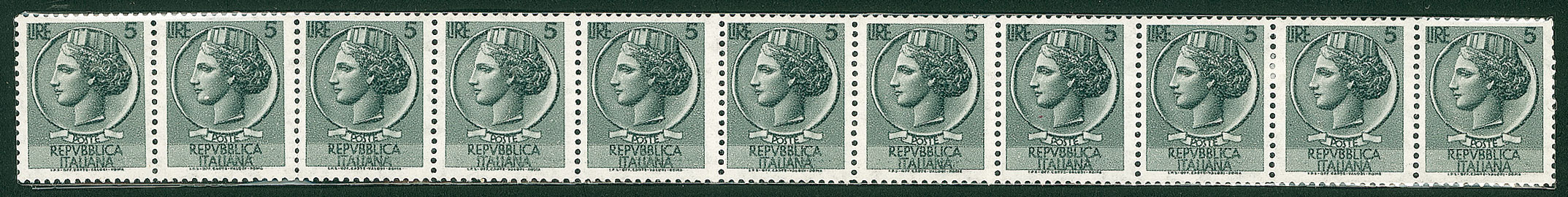Lotto 507 | REPUBBLICA - 1955 - Francobollo per Macchinette - 5 lire Siracusana con...