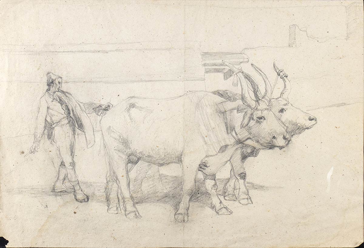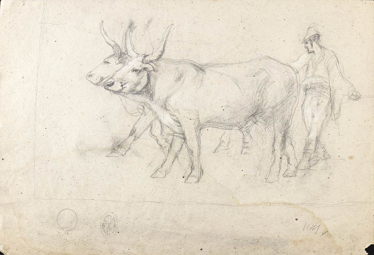 GIUSEPPE RAGGIO (Chiavari, 1823 - Roma, 1916): Buttero con buoi