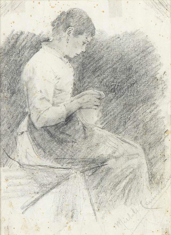 MICHELE CAMMARANO (Napoli, 1835-1920): Donna che cuce