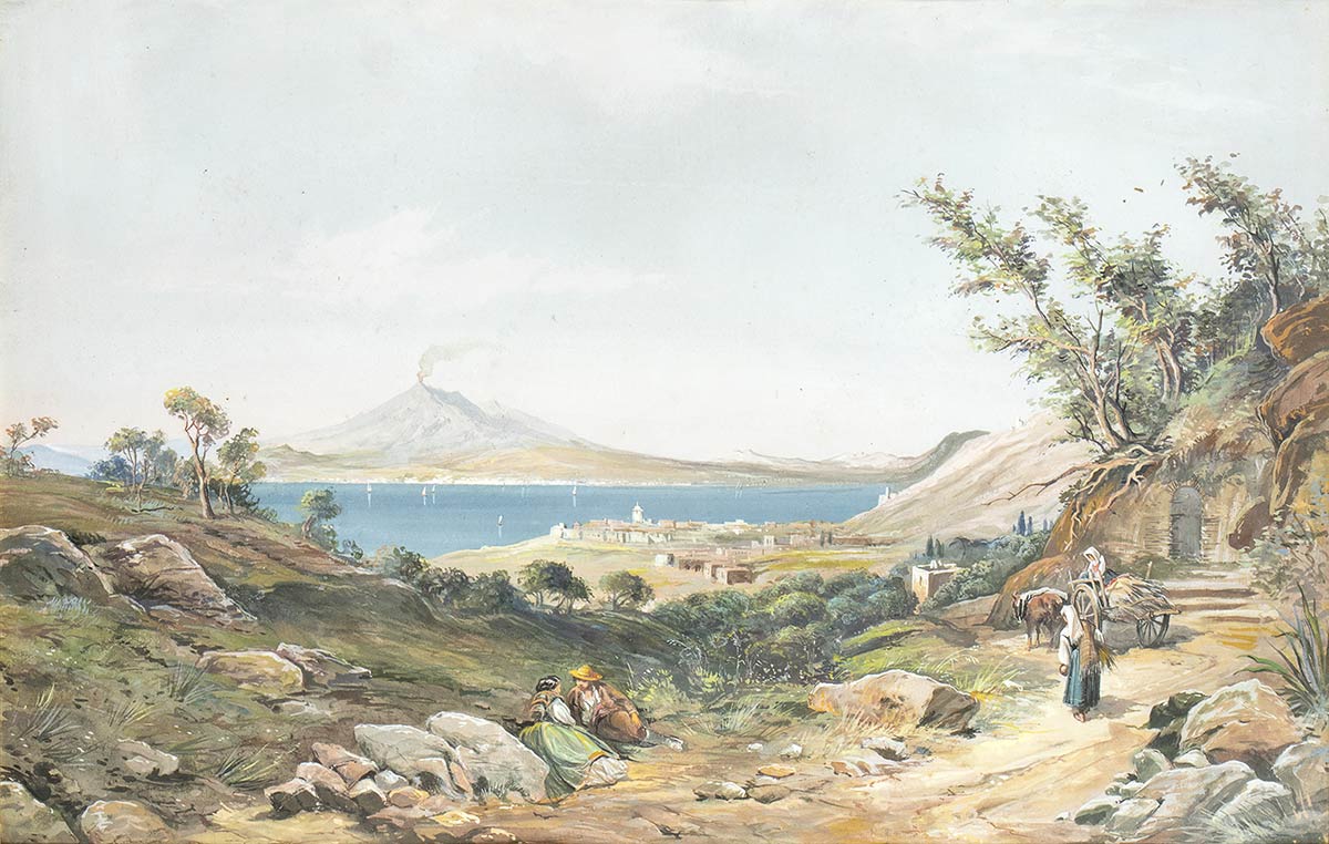 ANONIMO: Veduta del golfo di Napoli con Vesuvio