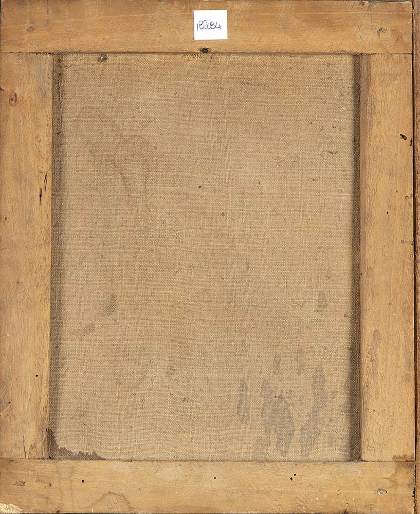 Discrete condizioni, cornice senza vetro. Varie cadute di colore, piccolo strappo della tela nella parte superiore.