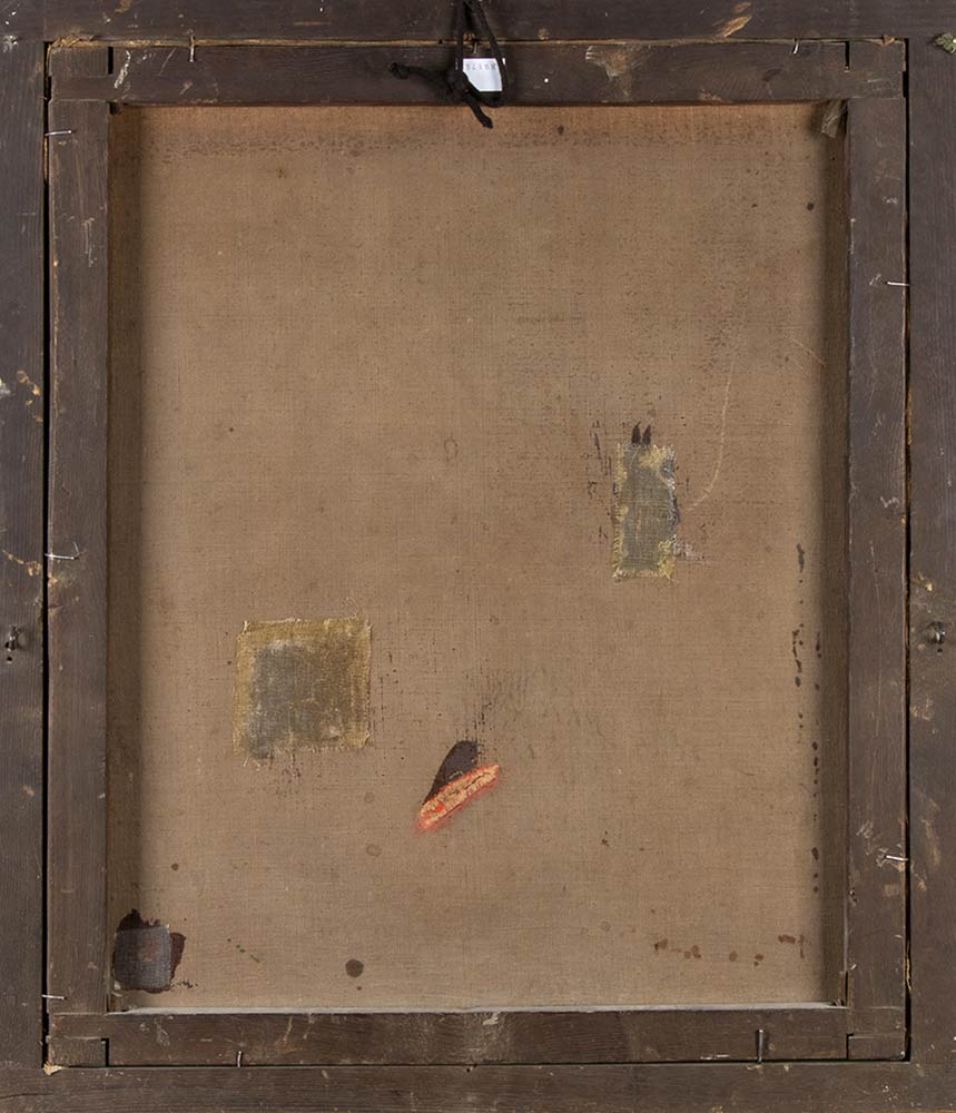 Discrete condizioni, cornice senza vetro. Foro della tela in alto a destra, restauri visibili al retro.