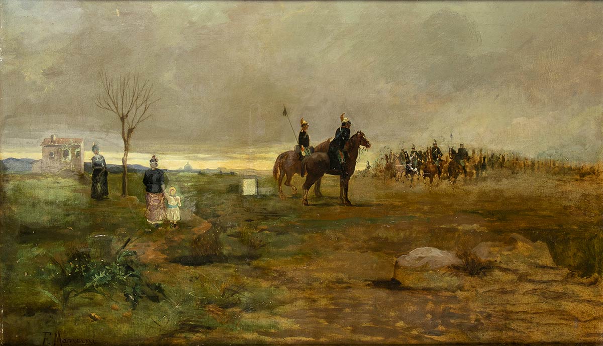FRANCESCO MANCINI (Napoli, 1830 - 1905): Adunata di cavalleria