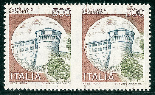 REPUBBLICA - 1980 - 500 lire Rovereto - coppia non dentellata al centro -...