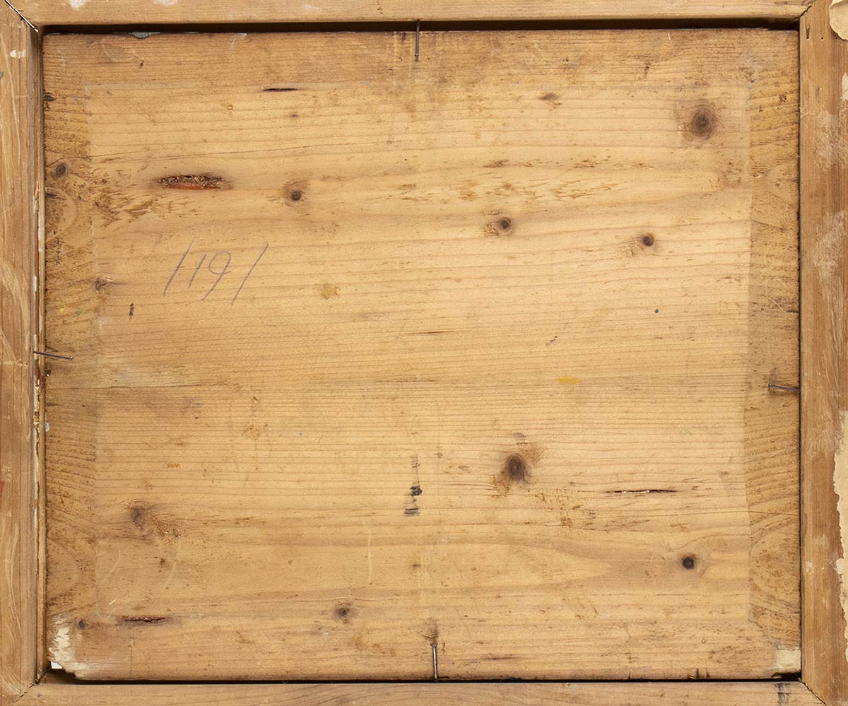 Buone condizioni, cornice senza vetro. Piccola mancanza della tavola in basso a destra