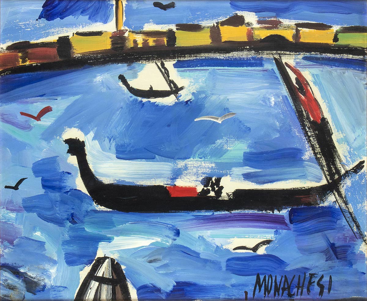 SANTE MONACHESI (Macerata, 1910 - Roma, 1991): Porto con barche