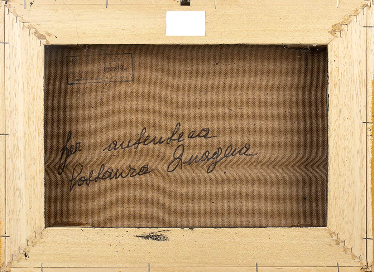 Firmato in basso a destra: "Quaglia", al retro firmato per autentica dalla moglie Costanza Quaglia.