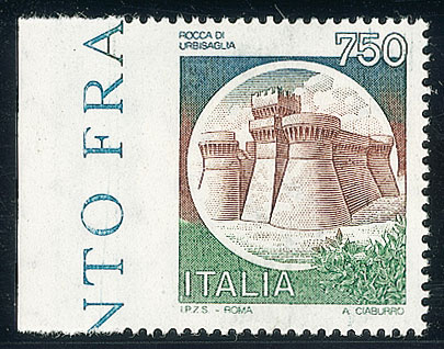 REPUBBLICA - 1980 - 750 lire Urbisaglia - non dentellato a sinistra - gomma...