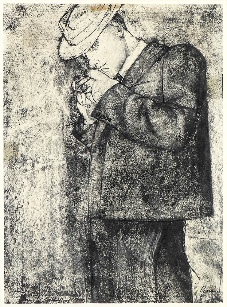 GIACOMO PORZANO (Lerici, 1925 - Pescosolido, 2006): Ritratto di gentiluomo che si accende un sigaro